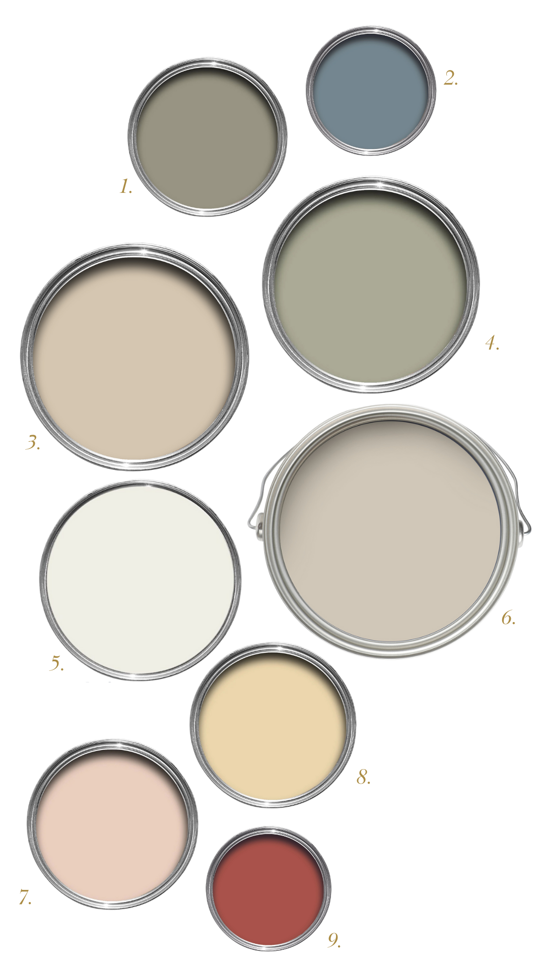 Here is a peek at some of the paint colors I will be using. I will share room schemes in the coming months as we progress.